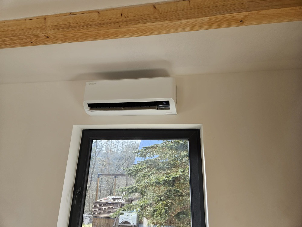 Chlazení či topení klimatizací rekreačního objektu.