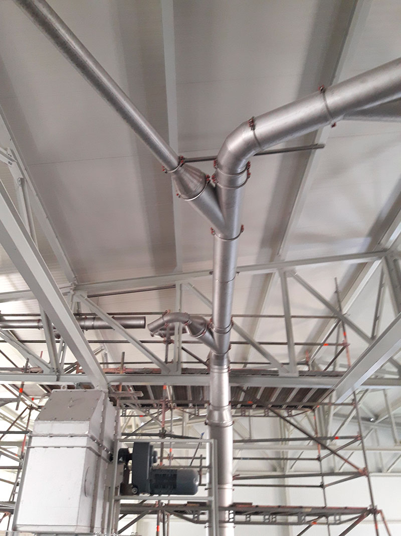 Jedná se o odsávání dopravních cest a zásobníků sypkých hmot. Instalací odsávání došlo ke snížení polétavé prašnosti ve výrobních prostorech a tím byla snížena náročnost a četnost provádění úklidových prací a zároveň byla zvýšena bezpečnost provozu.