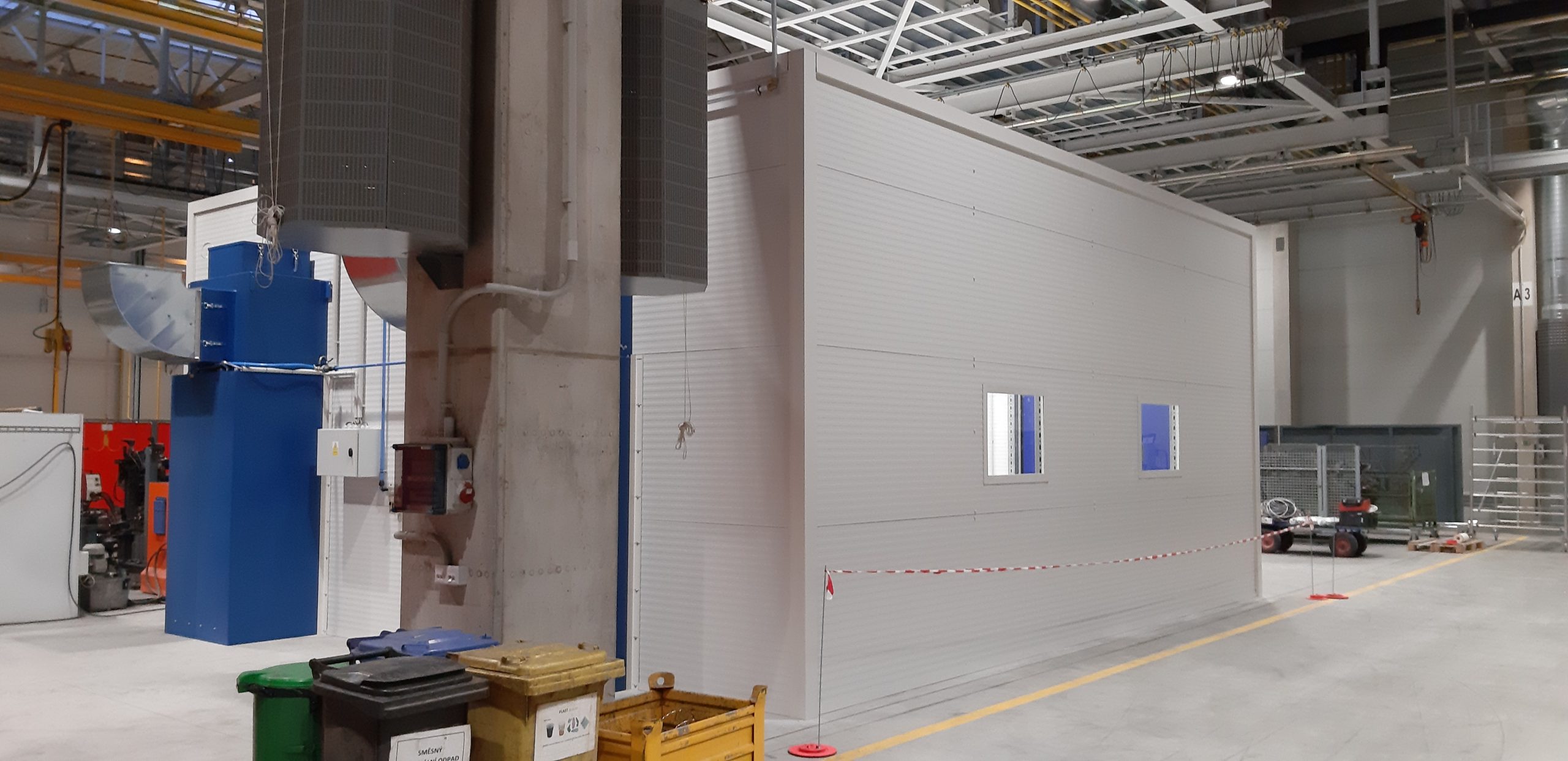 Vestavba na hale – pracovní box broušení 8 x 8 x 4 m
