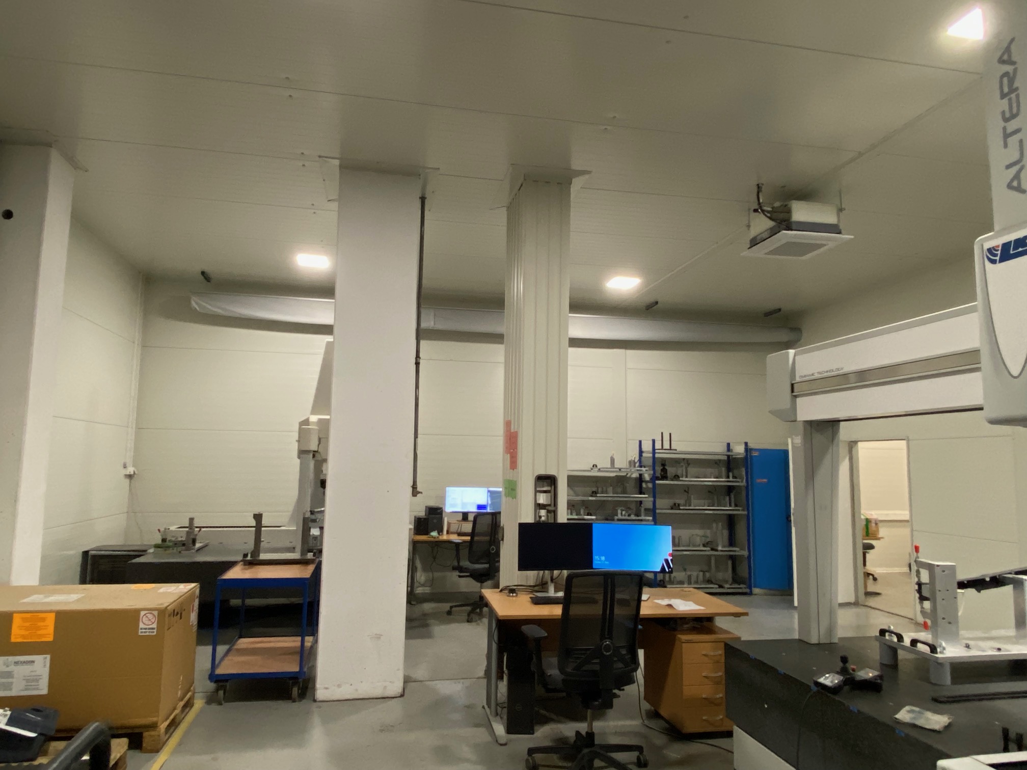 Realizace vzduchotechniky a klimatizace, která zajistí stabilní teplotu v měřící laboratoři 20° C. Konstantní teplota je požadována z důvodu požadavku na přesnost měření laserových měřících přístrojů.